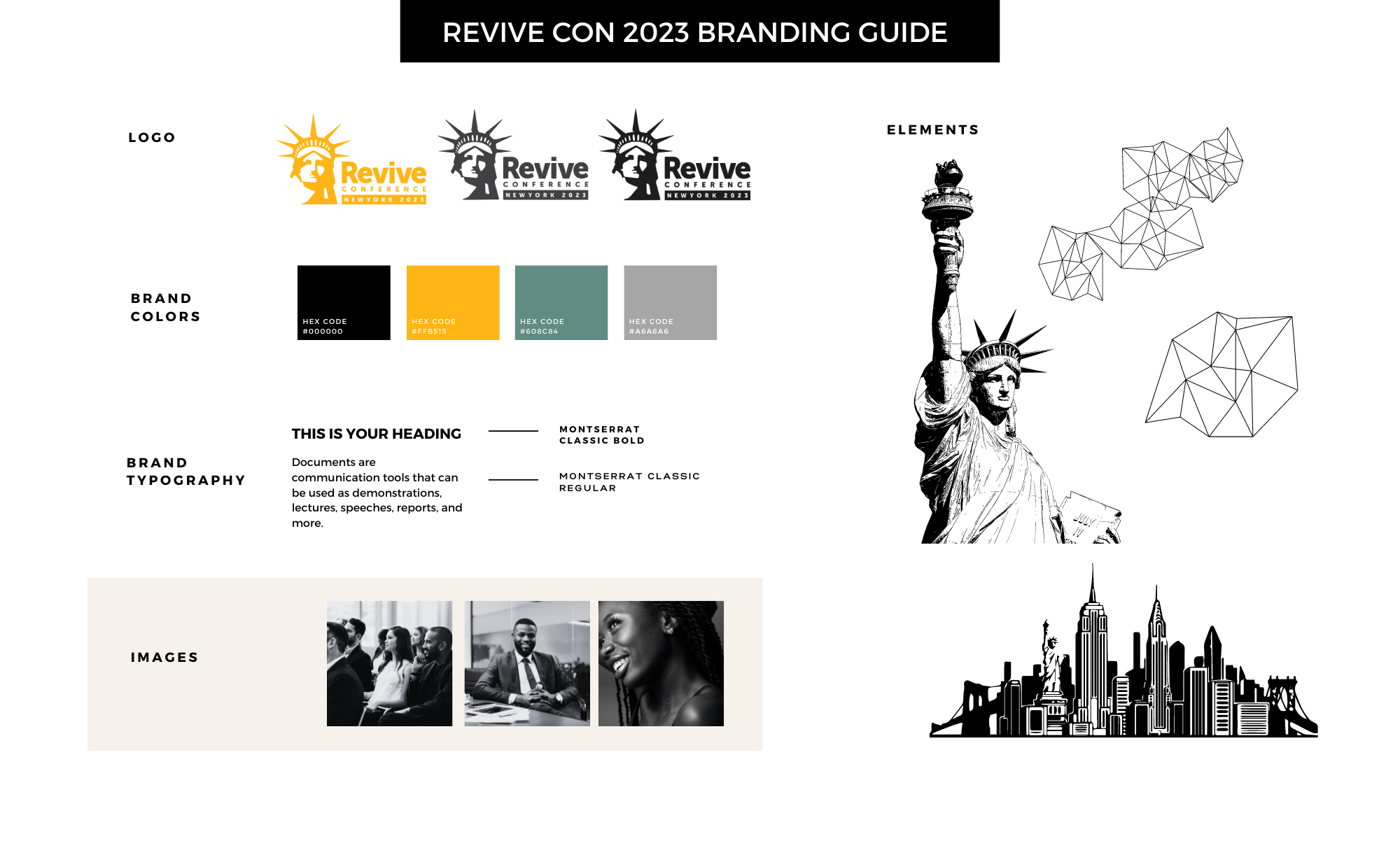 In the concept development stage for the Revive Conference brand identity, the focus was on creating a visual language that embodied the conference’s theme of sparking change and creativity. The moodboard centered around the vibrant energy of New York City, incorporating bold typography and iconic imagery. A key design element was the use of the city’s iconic cab yellow, which added a striking and memorable touch, evoking movement and vitality. This, combined with vibrant colors and clean, modern layouts, helped convey the essence of revival, collaboration, and innovation at the heart of the event.
