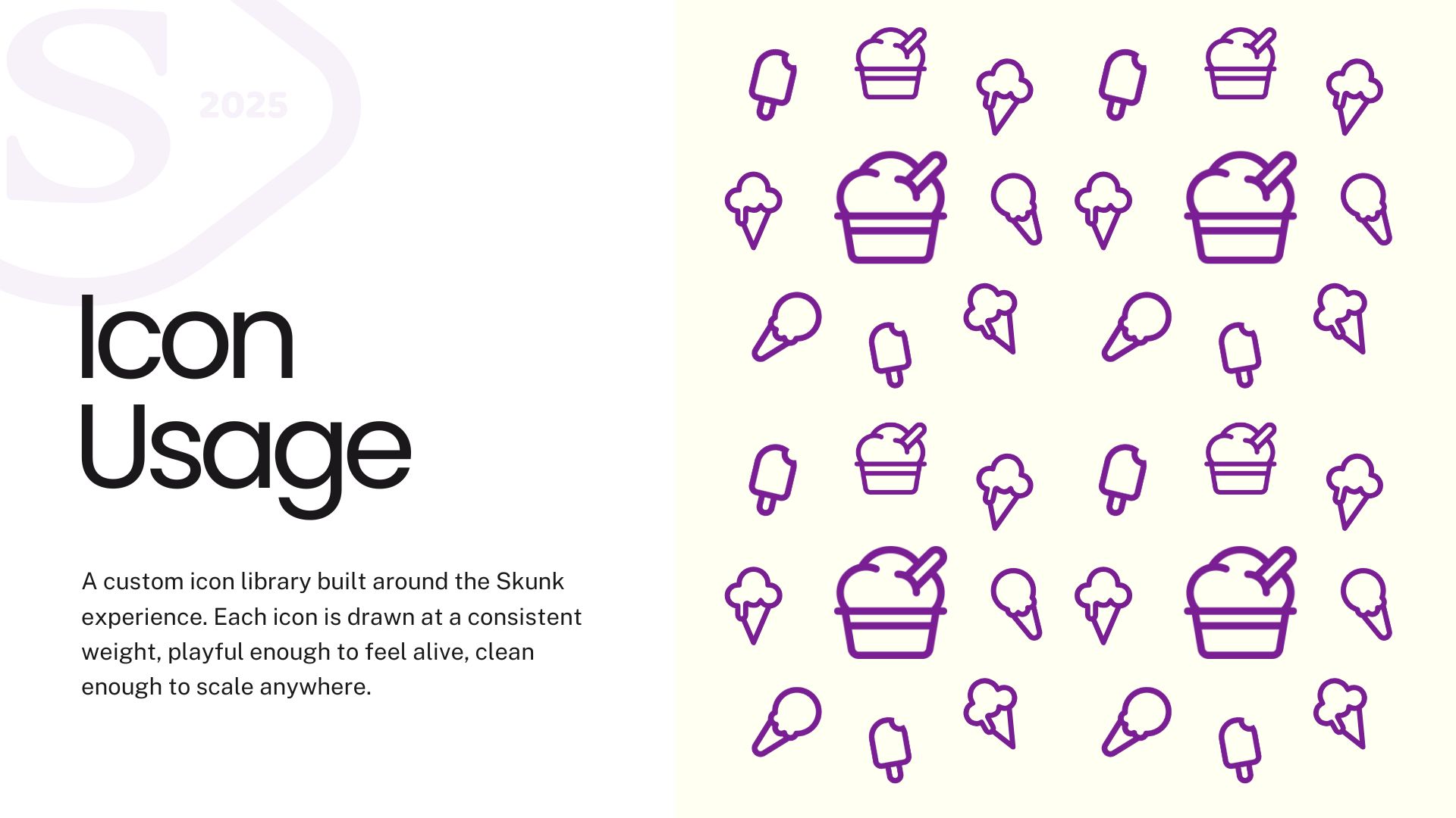 Skunk is a large ice-cream brand built on trust, authenticity, and comfort. Its audience seeks not just quality products, but reassurance, a brand that feels safe, familiar, and reliable. The project focused on creating a refined, approachable identity that communicates gentleness without losing confidence. The resulting visual system emphasizes clarity, restraint, and consistency, positioning Skunk as a trustworthy, emotionally resonant brand designed to feel comforting, clean, and dependable — especially for a female-focused audience.