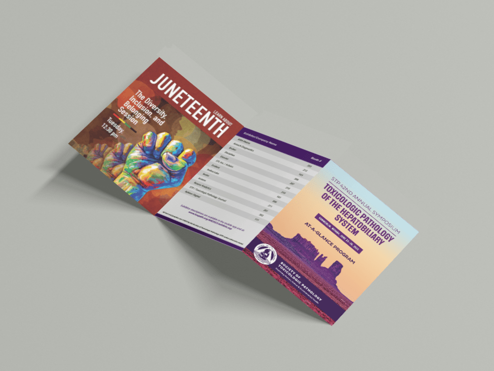 The identity extended across event signage, digital graphics, web banners, and ID systems to ensure consistency and usability. Each element was built for scalability and legibility across different formats, helping the event present a unified and professional image. The cohesive look elevated the perception of the annual meeting, reinforced STP’s credibility as a global leader in toxicologic pathology, and provided a flexible framework for future conferences.